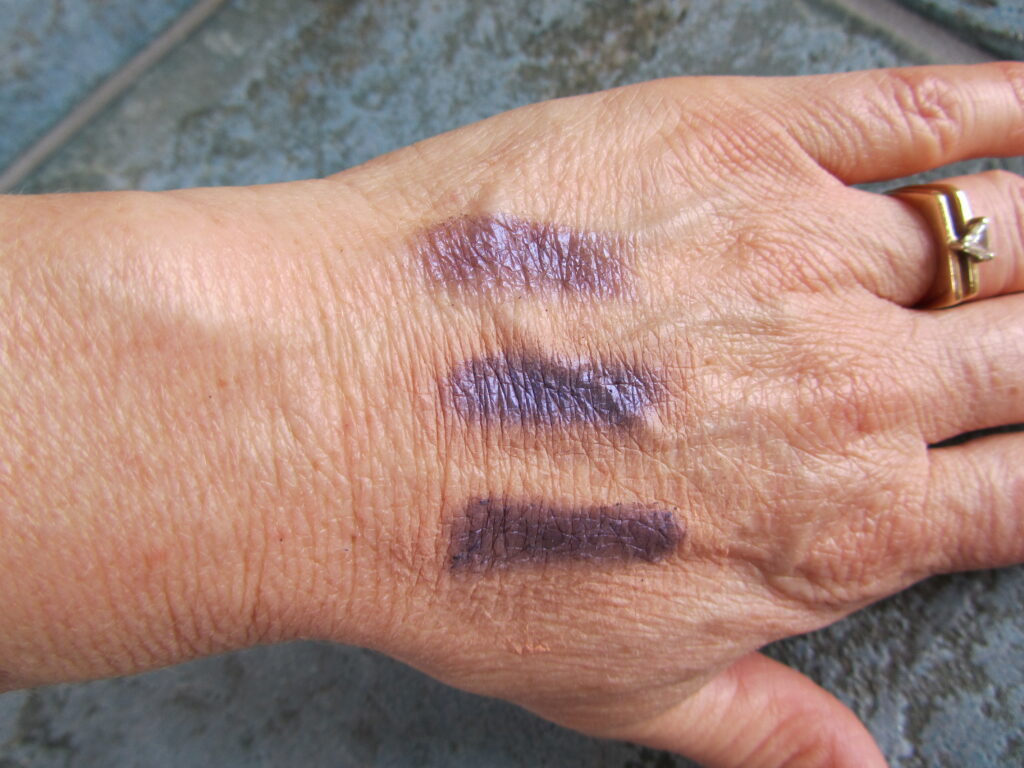 Sur la photo : En haut, le fard a été appliqué directement sur ma peau, au centre, avec la crème Quo et en bas avec la crème Benefit.